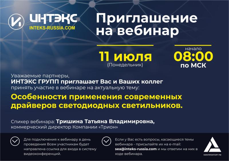 11 июля 2022 г. для наших партнеров мы организуем вебинар на тему: Особенности применения современных драйверов в светодиодных светильниках.